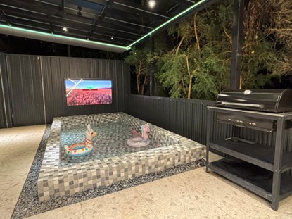 水面靜靜倒映著天空與綠意,我們的小泳池,是屬於旅人片刻放鬆的地方。