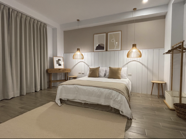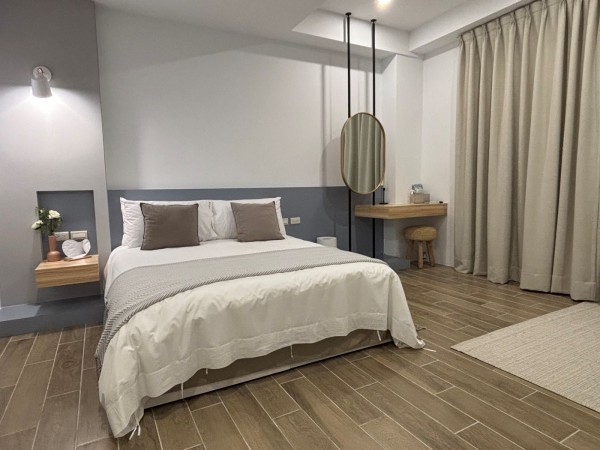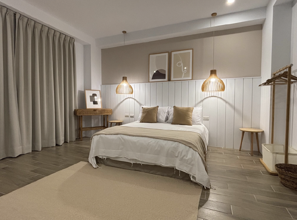以柔和色調與木質地板打造舒適氛圍,簡潔俐落的設計讓人一進門就能放鬆心情。柔軟的床鋪與溫潤的燈光,讓每一夜都沉浸在靜謐與安穩之中。