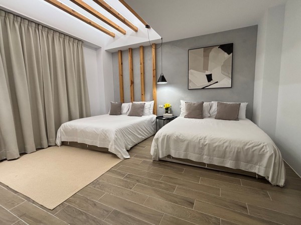 以自然木質與柔和灰白色調打造的四人房,展現極簡卻不失溫度的設計美學。 房內配置兩張舒適雙人床,柔軟床品與高質感枕被,讓您一夜好眠。大片落地窗簾營造靜謐氛圍,木質橫梁與抽象畫作點綴出細膩格調。 房內設施:獨立衛浴|空調|Wi-Fi|電視|盥洗用品|吹風機