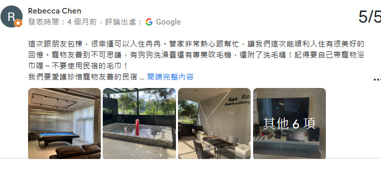 冉冉民宿位於宜蘭羅東交流道附近,是一座精心打造的全方位包棟民宿,以別墅包棟的形式迎接每一組旅客,讓你享受真正的度假自由與療癒放鬆。當你推開大門,映入眼簾的是寬敞明亮的大廳與落地窗,讓自然光灑滿整個空間。擁有多間雅緻套房,每間房都有自己的特色與舒適佈置,不論是夫妻情侶、小家庭、或是朋友團體,都能找到合適的房型與隱私空間。公共區域包括了精緻的餐廳與廚房、寬廣的休憩大廳、戶外庭院與戶外戲水區、寵物吹水機、高檔競賽級撞球桌、75吋4K大電視、高品質KTV、電動麻將桌等等,這些空間非常適合團體聚會、家庭聚餐、寵物共享度假時光。在冉冉民宿,你可以在陽台品嘗早晨咖啡、在庭院邊烤肉聊天、或是在夜晚仰望星空放鬆身心。在這座民宿中,設施豐富,是典型的宜蘭度假別墅,也是團體出遊時最理想的包棟住宿選擇。民宿附近交通便利,靠近羅東夜市、冬山河親水公園及傳統藝術中心,讓旅客白天可以散步、探索在地景致,晚上則回到冉冉民宿的別墅中安心休憩與交流。這樣的包棟型態,兼具城鄉感與度假感,是宜蘭住宿中非常具有特色的一環。